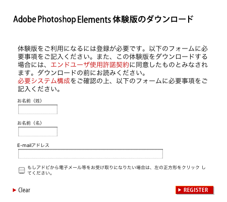 Adobe Photoshop Elements 体験版のダウンロード2) フォームに必要事項を入力します。