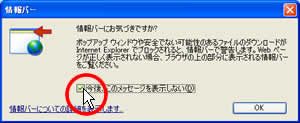 次回から情報バーを表示させないようにするには、Internet Explorerの設定を変更する必要があります。